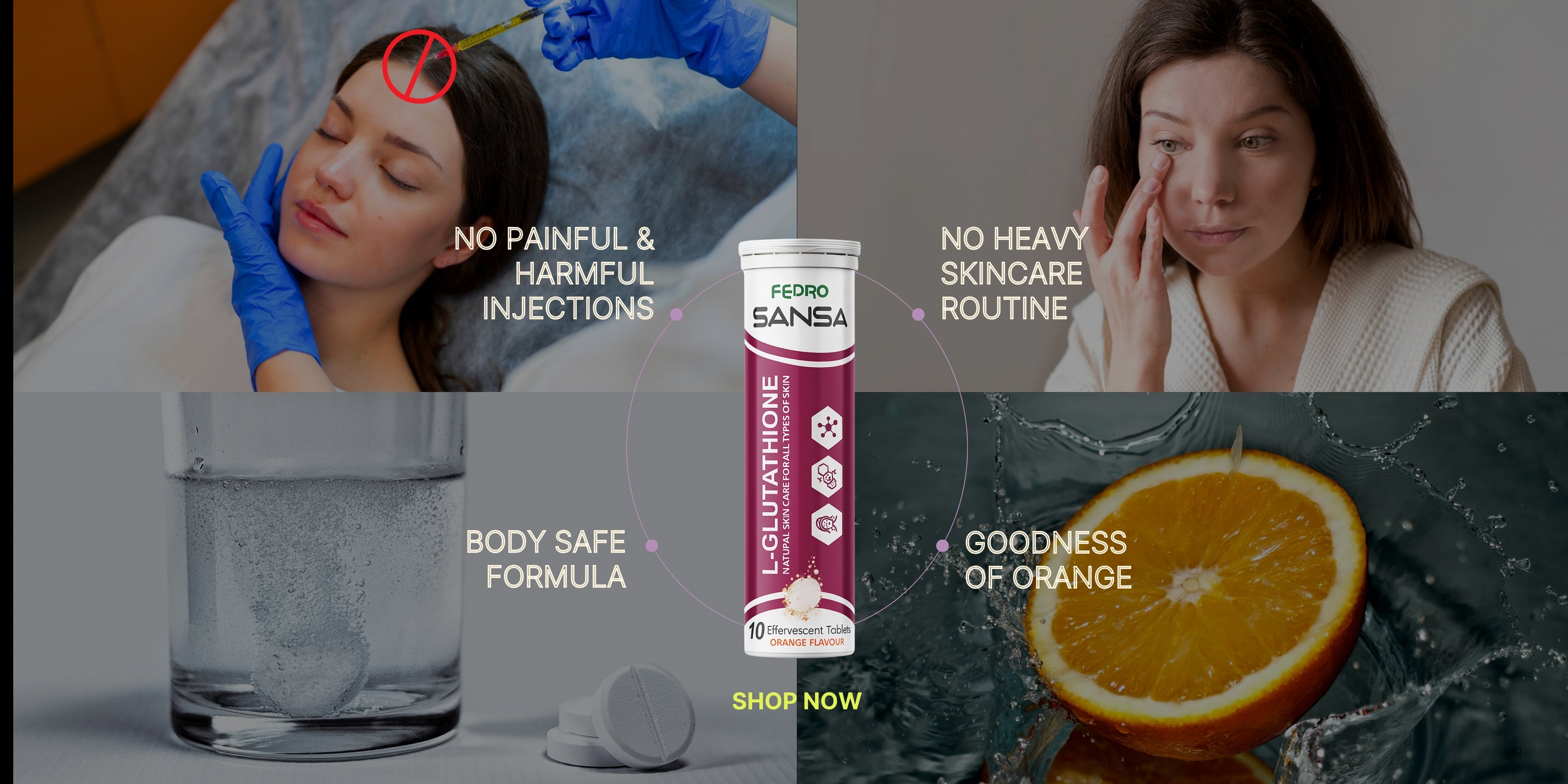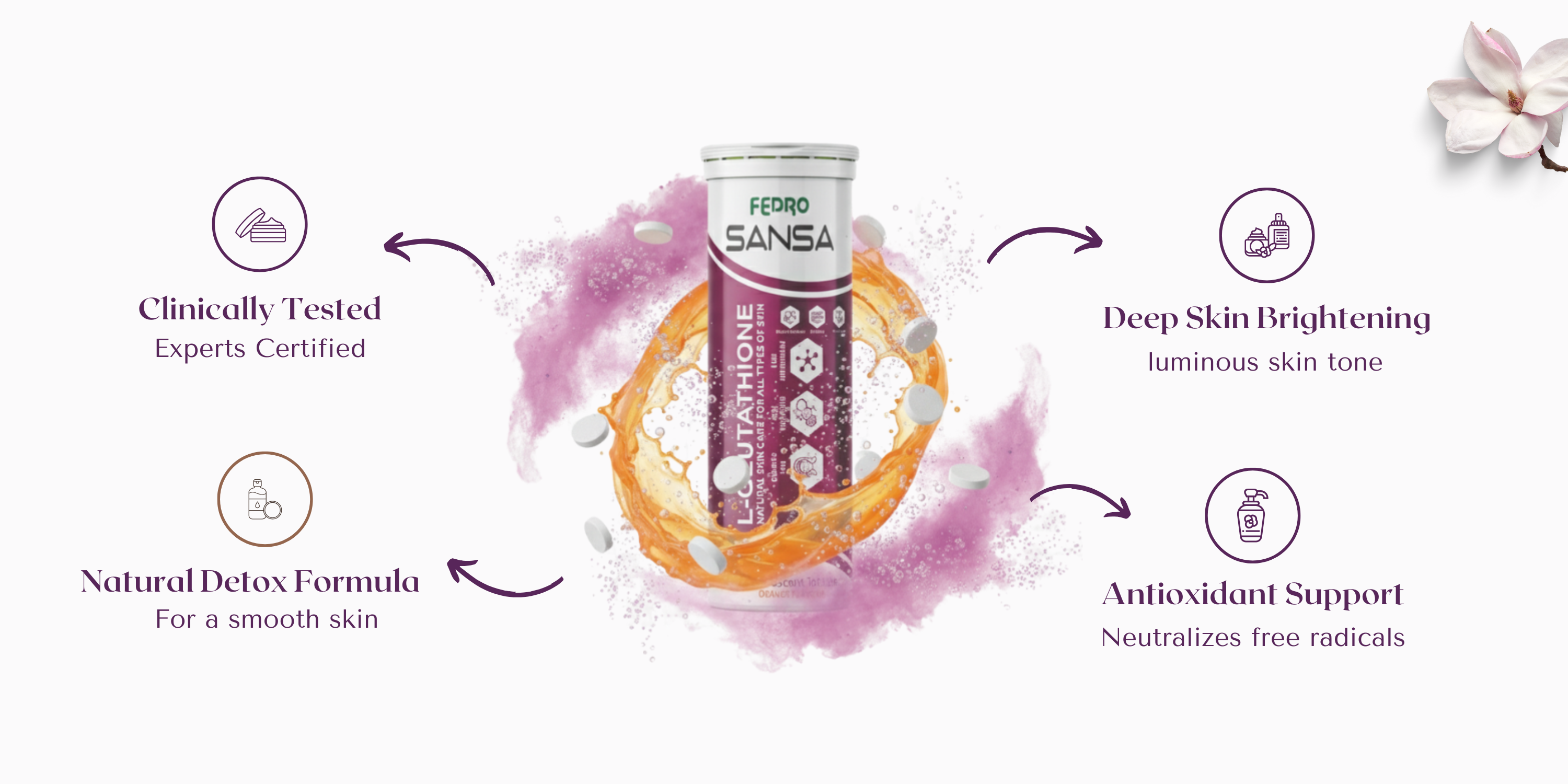 SANSA L-Glutathione Effervescent Tablets - Skin Whitening, Brightening & Daily Glow Drink (Orange Flavour)